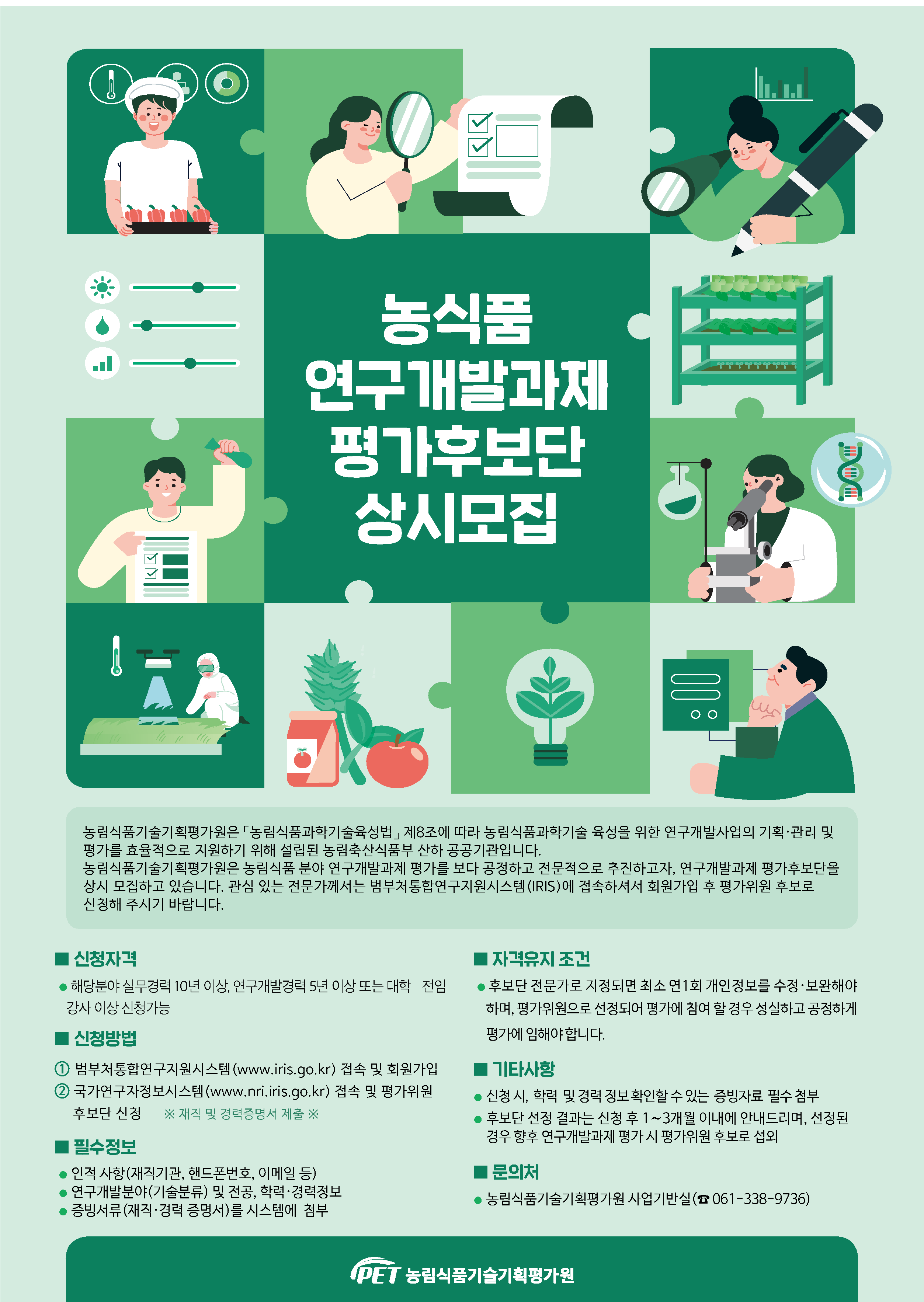 [농림식품기술기획평가원] 농림식품연구개발 과제 평가 후보단 상시모집 2차 안내